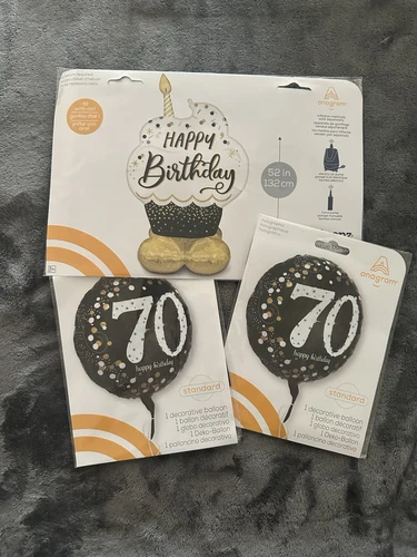 70th Birthday Party Decorations Balloons Black Gold Silver Jumbo Foil Man Woman
