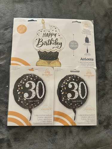 30th Birthday Party Decorations Balloons Black Gold Silver Foil Women Men Jumbo