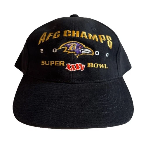 Vintage 2000 Baltimore Ravens AFC Champs Super Bowl Black Adjustable Hat