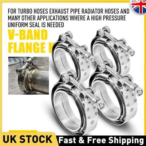 2.5" Inch 63mm V-Band Clamp + Flanges Stainless Steel Exhaust Turbo Hose 4PCS 4x