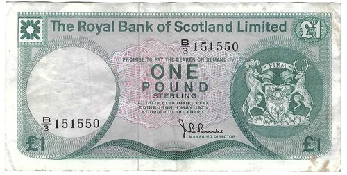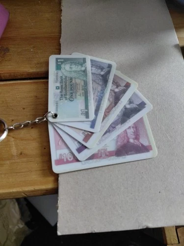 ROYAL BANK OF SCOTLAND KEY RING. 5 x PLASTIC NOTES, £1 £5 £10 £20 £100