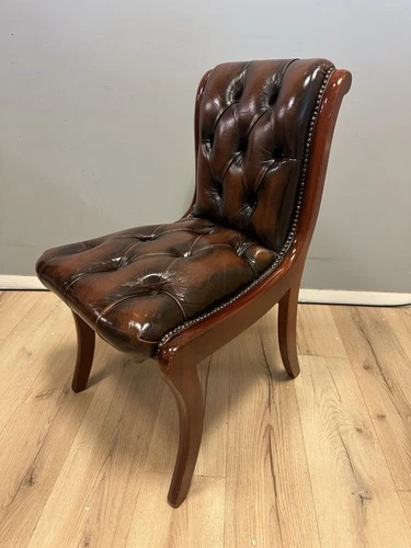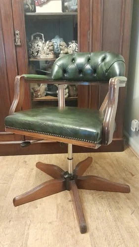 Vintage Green Leather Chesterfield Bankers Chair/office Chair