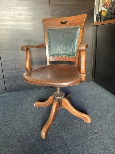 Antique Banker's Chair Oak Swivel Office Desk Chair - Circa 1910 Hillcrest