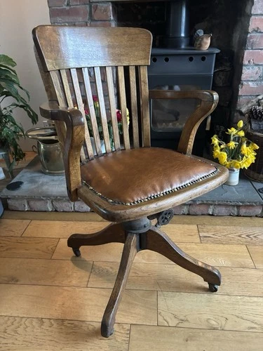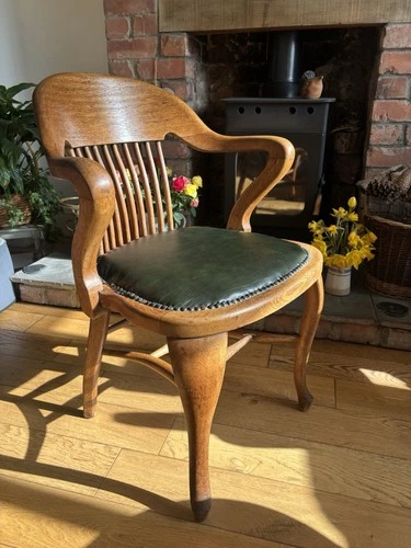 Beautiful Antique Edwardian Oak Bankers Office Chair Armchair