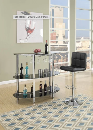 Poundex P2053 3 tier moderna black glass and chrome metal bar table with glass r