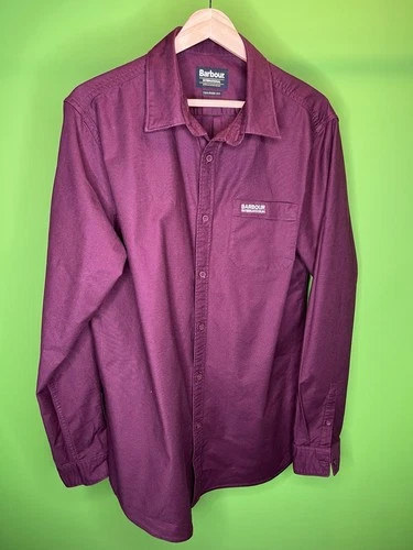Burgundy Men’s Barbour International Tailored Fit Shirt Buttoned Collars Large L