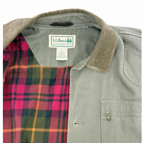 VTG L.L. Bean Field Coat Barn Jacket XL Tall Grey Canvas Flannel Lined Corduroy