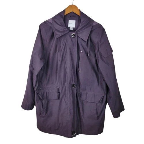 Croft Barrow All Weather Jacket Coat Plus 1X Purple Hooded Flannel Lined
