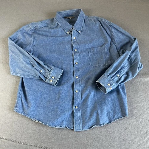 Croft & Barrow Denim Jean Shirt Men's 2XL Blue Button Down Long Sleeve Cotton