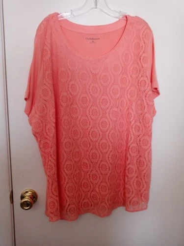 CROFT & BARROW ladies plus size peach short sleeve lacy front top size 3X