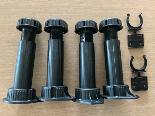 Kitchen Base Cupbard/Cabinet Unit Feet Legs x 4, 150 mm & 2 x Plinth Clips Black