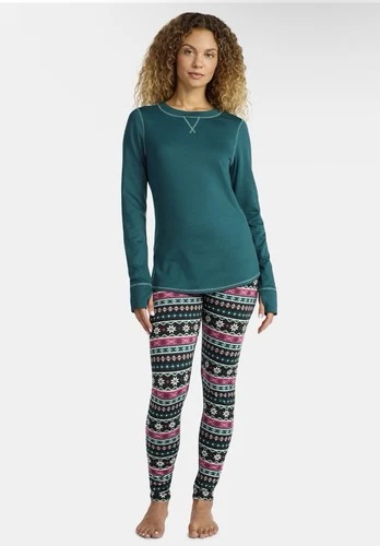 ClimateRight by Cuddl Duds Women's Thermal Top & Leggings Set XL Teal Fair Isle