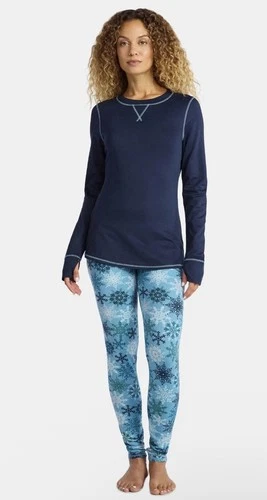 ClimateRight by Cuddl Duds Women's Base Layer Set Top Leggings Blue Snowflake XL