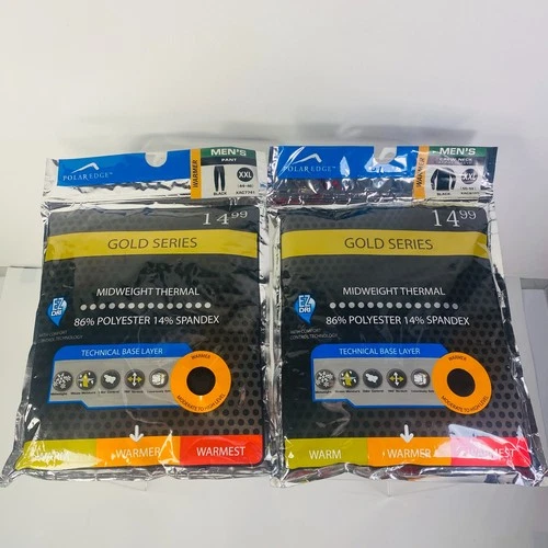 Polar Edge Mens Thermal Shirt and Pants Black Warmer Gold Series Midweight XXL