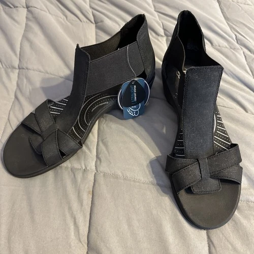 NEW G.H. Bass "Lite Kia" Women's Size 7.5W Wide Wedge T Strap Black Sandals NWT