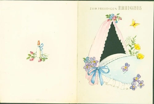 13813346 - Congratulations Bassinet Die Cut Fold Postcard When Folding Baby