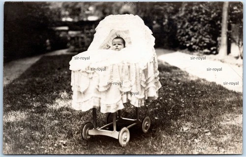 Baby Eva Maria in bassinet 1924 in Hamburg-pram-photo postcard 14x9cm