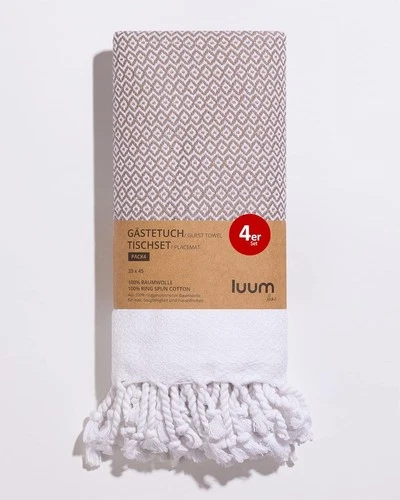 Set of 4 Hamam Guest Towels Placemats 33x45cm Latte 100% Cotton Gift