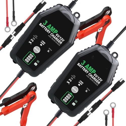 [2 Pack] 3-AMP Car Battery Charger, 6V/12V Trickle Charger and 3AX2, Black