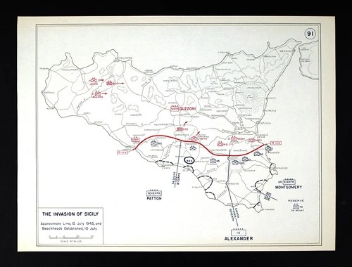 WWII Map 91 Invasion of Sicily Italy Operation Husky Battle of Vizzini Augusta