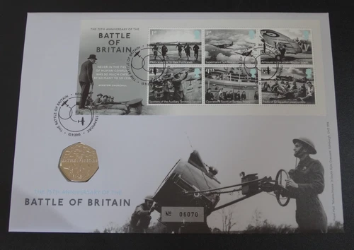 Royal Mail Battle of Britain 75th, Royal Mint BU 50p coin & First Day Cover 2015
