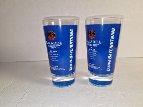 2 Tampa Bay Lightning Bacardi Oakheart Rum Plastic Pint Glasses Bolt Blast 2013