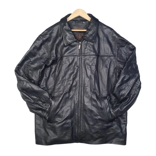 ST Johns Bay Leather Jacket Mens Size XL Quilted Liner Full Zip Heavyweight
