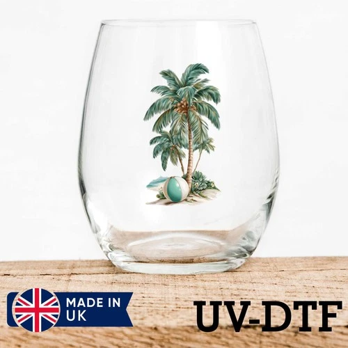 Palm Tree And Beach Ball 8pcs UV DTF Stickers - Glass Laptop Tumbler Cup lz846