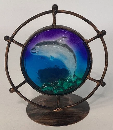 Stained Glass 3D Dolphin Tea Light Candle Holder Beach House Or Cabin Decor
