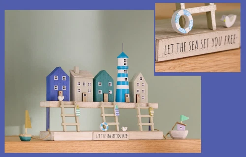 NEXT Large Blue/White Wooden Beach Hut Scene "Let the Sea Set You Free" Ornament