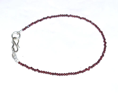 Natural Garnet Gemstone Faceted Beads 6" String Bracelet 925 Silver