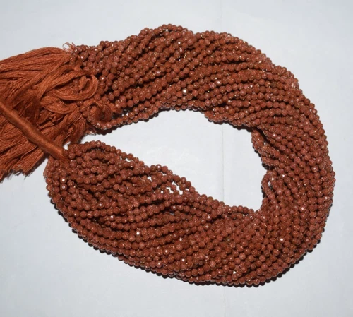 Natural Red Sunstone Gem 3mm Faceted Washer Beads 12" 1 String