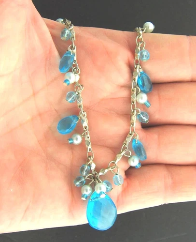 Vintage Blue Crystal Dangle Necklace 17 To 21 Inch