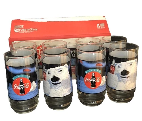 Vintage Coca Cola Polar Bear Glasses 8 Piece Set 16 Oz 1995 Indiana Glass