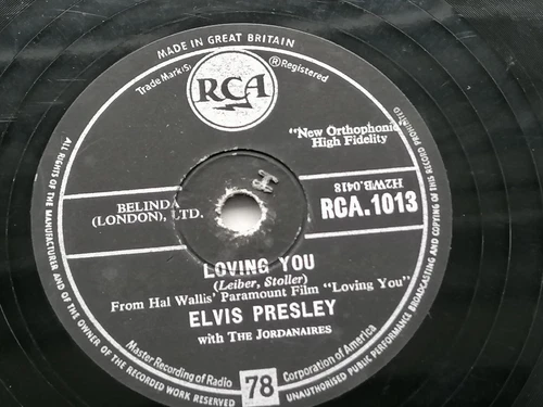 ELVIS PRESLEY UK 1957 R.C.A 78 LOVING YOU / TEDDY BEAR RCA .1013