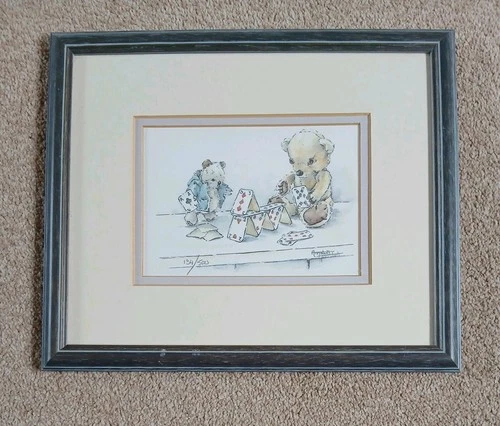 Teddy Bears Playing Cards Ann Stott Signed LTD ED 134/500 Watercolour Ink Print