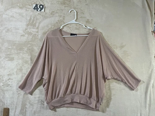 Paperoc L Women's Peach Pink Metallic Blouse Top