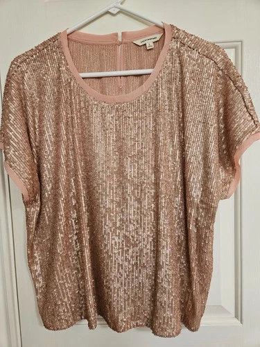 LUCKY BRAND PEACH COLOR SEQUIN TOP BUTTON BACK CAP SLEEVES SIZE LARGE NEW NO TAG