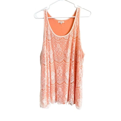 Maurices Peach Cream Lace Underlay Tank Top XL Vintage Inspired Boho Romantic