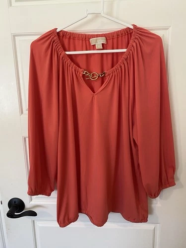 MICHAEL KORS Coral Blouse Women's Size XL w Gold Hardware - Beautiful!