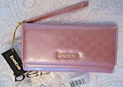 Bebe Mauve Ravena Embossed Trifold Wristlet Wallet NEW NWT