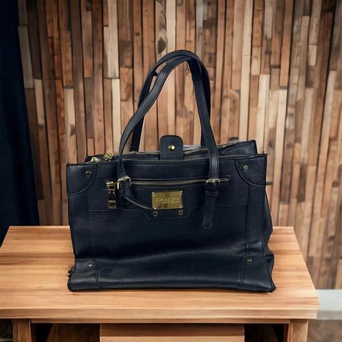 Bebe Purse Pocketbook Black Faux Leather Satchel Handbag Woman’s