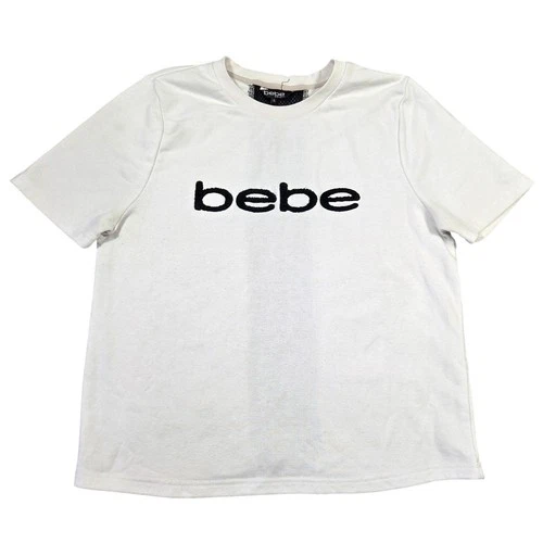 Bebe Sport White Graphic Logo Short Sleeve T Shirt Top XL Casual Athleisure Y2k