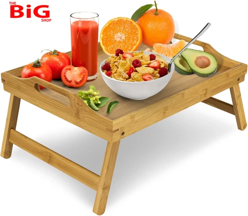 KLASS Bamboo Bed Table with Foldable Legs, Multipurpose Laptray Breakfast in Bed