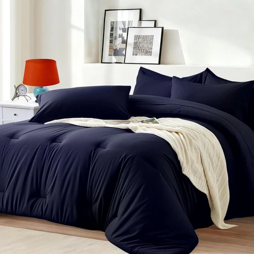Navy Blue California King Comforter Set 7 Pieces, Bed in a Bag with Sheets, All