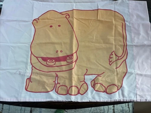 Vintage 1970s Steven Utica "GRUNT!" Pink & Orange Hippo Pillowcase Retro Decor