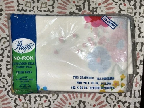 2 NOS Vintage Pacific Mills Standard Pillow Case Floral Poppy Muslin Cotton/Poly