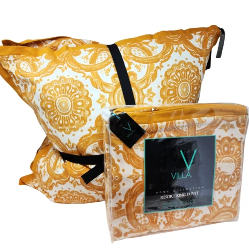 RESORT Villa Home Collection King Medallion Duvet Cover &2 Euro Pillow Shams