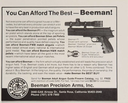 1989 Print Ad Beeman Precision Arms Magnum Air Pistols Santa Rosa,California