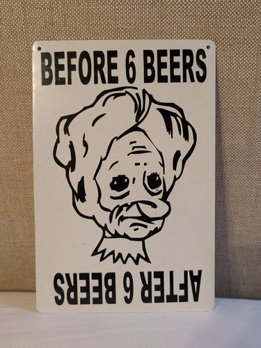 BEER ART METAL TIN SIGN METAL SIGN AFTER 6 BEERS PRETTY BEFORE 6 BEERS UGLY FLIP